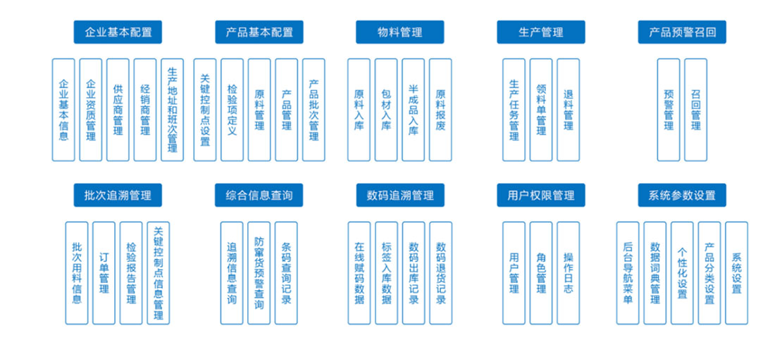 1.企业内部管理:通过追溯系统,实现企业内部从原料管理、生产管理、包装管理、仓储管理、市场流通的规范化操作,做到能够精准控制各个环节节点,实现责任到环节、责任到班组、责任到个人。